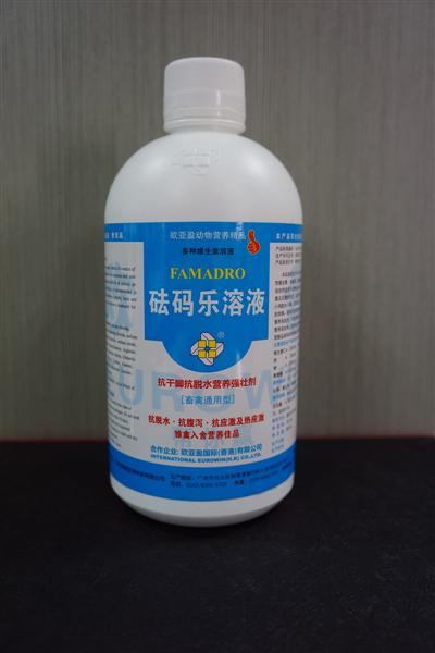 本品是适用于各种动物的较高浓度的水溶性维生素、电解质、氨基酸微乳剂,这种液体添加剂适用于动物体缺水状态的调理及对热应激及应激的抵抗。临床使用表明:本品对减少小鸡脱水干脚,抗热应激,抗应激有极为显著的效果。砝码乐溶液是雏禽开食需补充的极佳营养添加剂,也是幼畜减少脱水增进食欲极佳营养添加剂。使用本品是种鸡场、肉鸡场、鸡苗贩运者和其他禽场以及猪场的极佳选择。